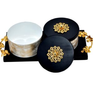 - Size- Jar 4″ Diameter x 3″ Height, Tray Size- 8 x 4 inches